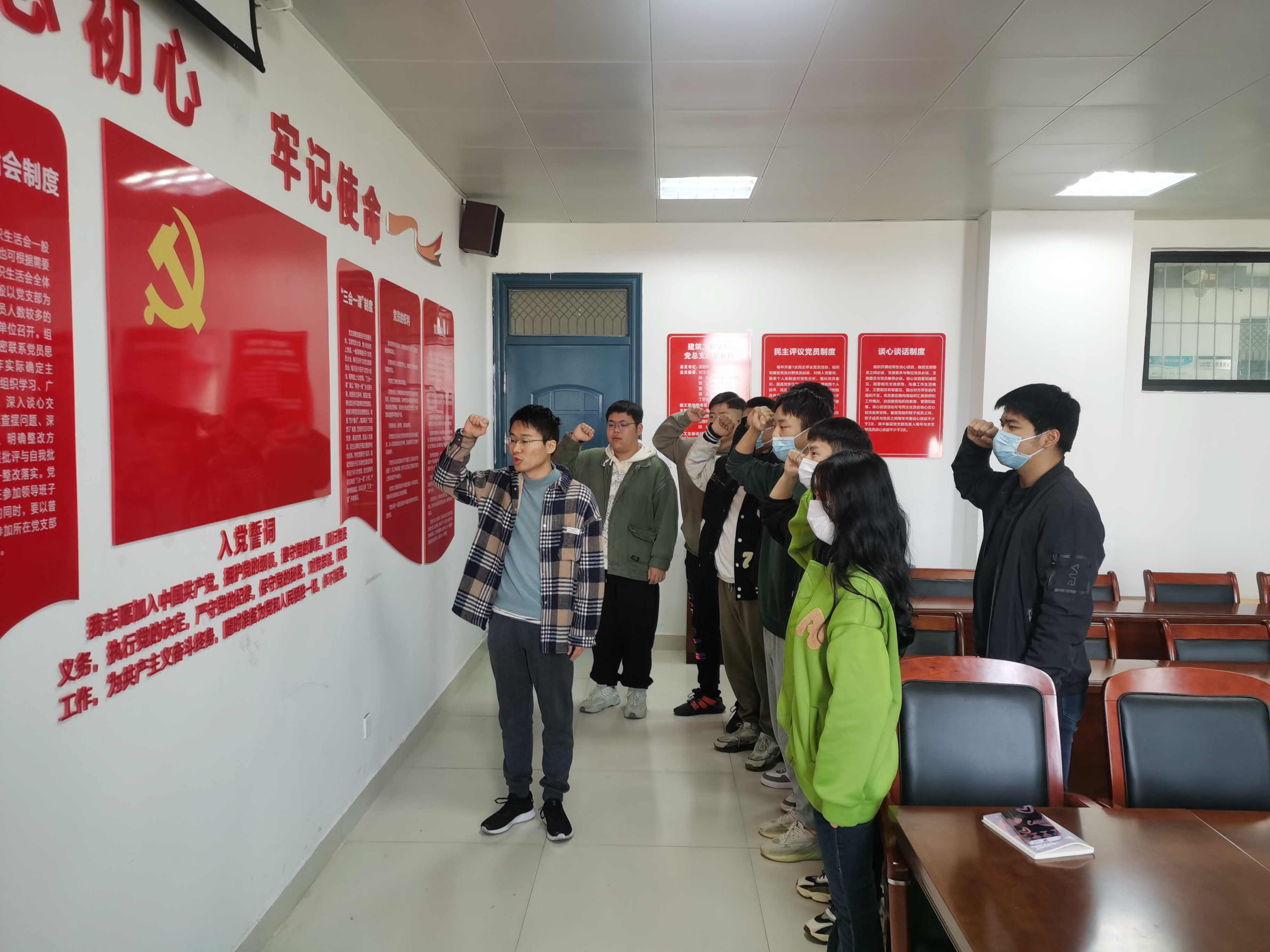 会上,13名党员发展对象向大会汇报了个人情况,表明了入党意愿;到会党员教师对申请人能否入党展开讨论,通过无记名投票,一致同意接收13名党员发展对象成为中国共产党预备党员;学工党支部组织员陈峙带领新入党学生面向党旗庄严宣誓。最后,董晶代表建工学院党总支对新入党学生开展了集中谈话,希望同学们牢记党员身份,在今后的学习和工作中严格要求自己,处处发挥党员模范带头作用,刻苦学习、踏实工作,为中华民族的伟大复兴贡献自己的青春和力量。