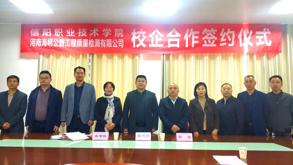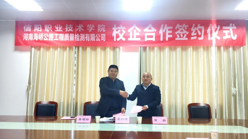 为加强校企合作,进一步推进产教融合,10月26日上午,我校与河南海峤公路工程质量检测有限公司在建工学院会议室举行了校企合作签约仪式。河南海峤公路工程质量检测有限公司总经理唐增锋、实验室主任张淑娟、试验检测工程师郑军、黄绍祥,学校党委委员工会主席黄新、实验实训管理中心、教务处(校企办)、欧美色视频综合在线观看负责人及有关人员出席本次仪式。签约仪式由戚荣金主持。