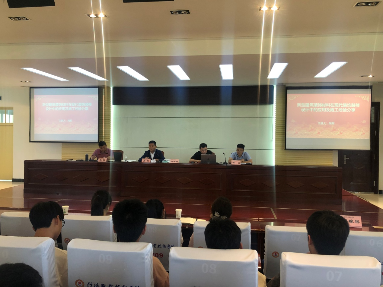 6月6日下午,欧美色视频综合在线观看邀请信阳市建筑装饰装修协会会长、河南荣冠装饰工程有限公司董事长尚军、信阳市建筑装饰装修协会执行会长、信合集团河南新元装饰公司总经理何平俊、信阳市建筑装饰装修协会监事长、河南恒之辉石材有限公司董事长张恒一行3人为建筑装饰工程技术、城乡规划专业学生作专题报告。欧美色视频综合在线观看副院长黄波、教务办主任潘磊、建筑装饰教研室主任翟翌辉及180余名师生参加了报告会,报告会由黄波主持。