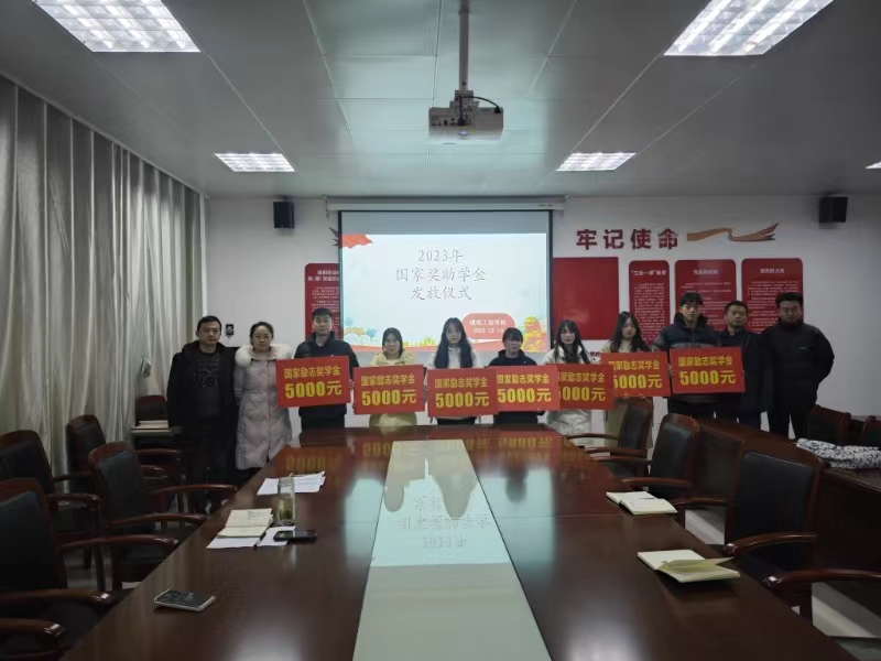 仪式上,孙浩宣读了建工学院2023年国家奖助学金获得者名单,参会老师与获得国家奖助学金的学生代表合影留念。
