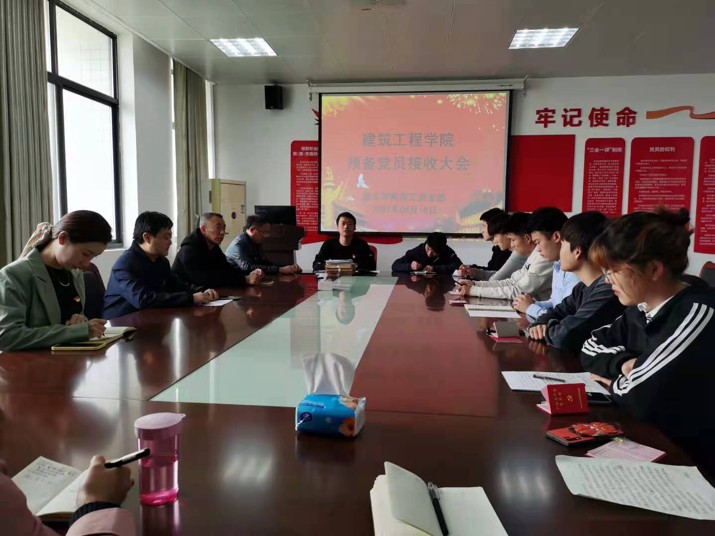 4月16日,欧美色视频综合在线观看学工党支部在3013党员活动室,召开了2021上半年学生预备党员接收暨入党宣誓大会。党总支书记孟朝晖、学工党支部书记徐昊及学工党支部全体党员教师参加会议,会议由学工党支部组织委员董晶主持。