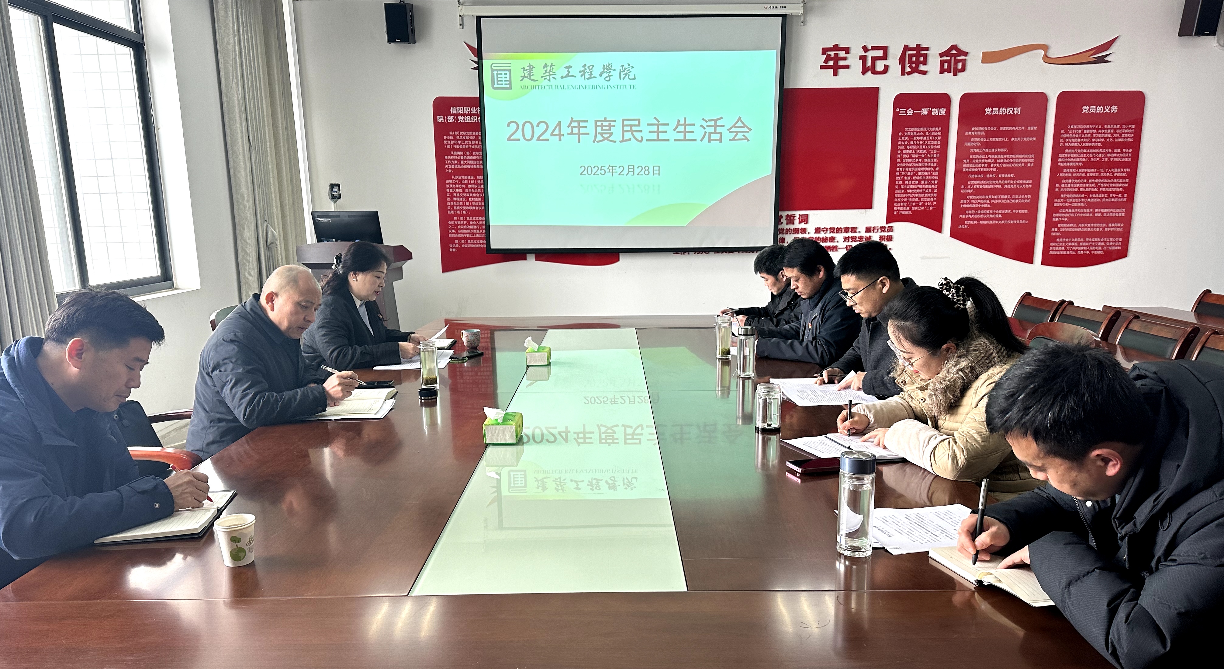 2025年2月28日,欧美色视频综合在线观看在党建活动室成功召开2024年度民主生活会。学校党委委员、工会主席黄新到会指导,会议由党总支书记刘亚梅主持。