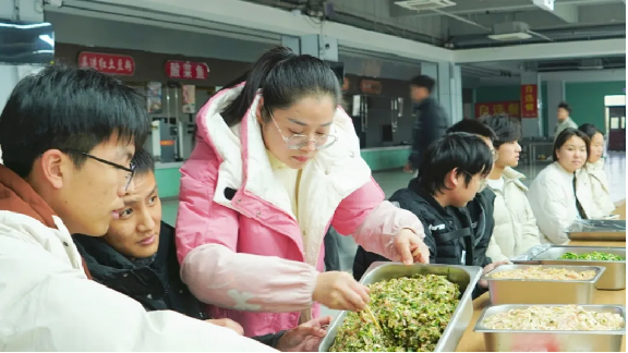 学生在老师的带领下有序入场一时间餐厅内人头攒动、热闹非凡分发饺子皮、分配馅料一切都在紧锣密鼓地有序进行中师生们围坐在一起在欢声笑语中度过了包饺子的温情时刻轻松和谐的氛围如春风拂面驱散了冬日的寒冷